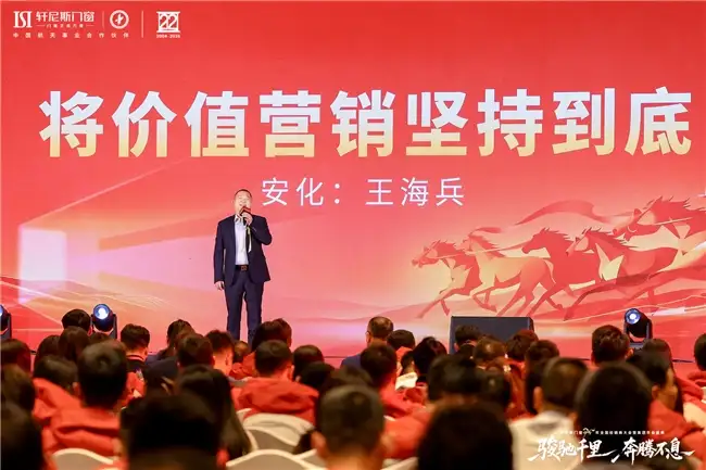 上午会议渐入高潮,轩尼斯门窗董事长曾庆伟登台作战略指引与未来展望。曾董以故事叙述传递宏阔视野与坚定信念,带领全体与会者洞见行业趋势与时代机遇。他的话语铿锵有力,字字指明方向,句句凝聚共识,激励轩尼斯门窗人以“骏马”的锐意开拓前程,以“奔腾不息”的精神深耕脚下,共同执笔书写更加壮丽辉煌的新篇章。
